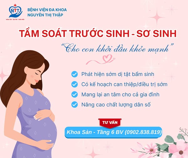 Mang thai và sinh con là hành trình thiêng liêng, nhưng cũng tiềm ẩn nhiều nguy cơ ảnh hưởng đến sức khỏe của cả mẹ và bé. Vì vậy, tầm soát trước sinh và sau sinh đóng vai trò đặc biệt quan trọng, giúp phát hiện sớm bất thường để có hướng xử trí kịp thời.  Các mốc tầm soát trước sinh: - 3 tháng đầu (tuần 11–13): Siêu âm đo độ mờ da gáy, xét nghiệm máu tầm soát nguy cơ hội chứng Down, Edwards, Patau... - 3 tháng giữa (tuần 20-25): Siêu âm hình thái học, kiểm tra sự phát triển của cơ quan tim, não, xương, tầm soát dị tật bẩm sinh. - 3 tháng cuối (tuần 28–32): Theo dõi sự phát triển thai nhi, tình trạng nước ối, bánh nhau, đánh giá nguy cơ tiền sản giật, đái tháo đường thai kỳ.  Sau sinh: - Sàng lọc sơ sinh trong 48 giờ đầu: Phát hiện sớm bệnh lý di truyền, rối loạn chuyển hóa, suy giáp bẩm sinh, thiếu men G6PD... - Khám định kỳ: Theo dõi phát triển thể chất, tinh thần, tiêm chủng đầy đủ giúp trẻ khỏe mạnh toàn diện.  Tại Bệnh viện Đa khoa Nguyễn Thị Thập, dịch vụ tầm soát trước sinh và sau sinh được thực hiện bởi đội ngũ bác sĩ sản – nhi giàu kinh nghiệm, cùng hệ thống máy móc hiện đại, đảm bảo an toàn và chính xác.  Các cặp ba mẹ hoàn toàn có thể yên tâm khi đồng hành cùng chúng tôi trong suốt thai kỳ, sinh nở và chăm sóc bé yêu. Một sự chuẩn bị chu đáo hôm nay chính là nền tảng cho tương lai khỏe mạnh mai sau. -------------------------------------  Bệnh viện Đa khoa Nguyễn Thị Thập - 101 Nguyễn Thị Thập, P. Tân Mỹ, TP.HCM.